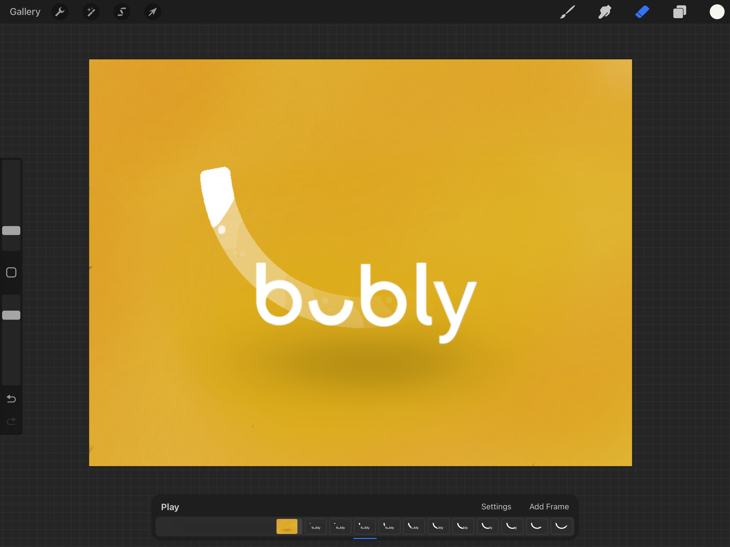 The smiles is drawn in one frame at a time while simultaneously erasing the letters and then the animation loops back to the first frame.